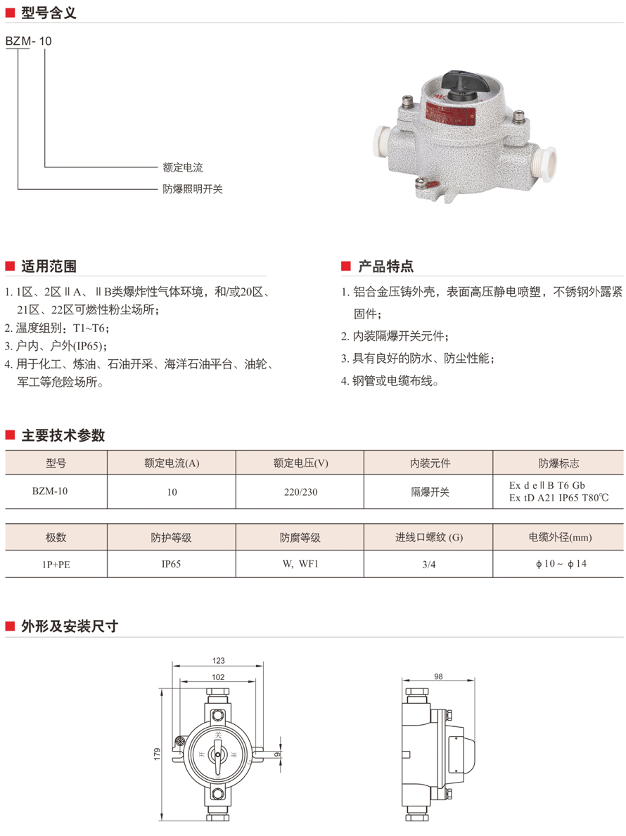 BZM-DIP10系列粉塵防爆照明開關(guān)