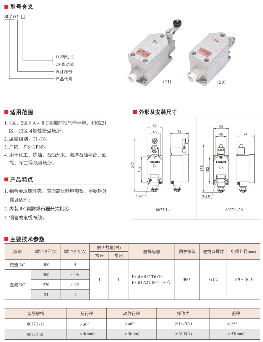 8077/1系列防爆行程開關(ⅡC)